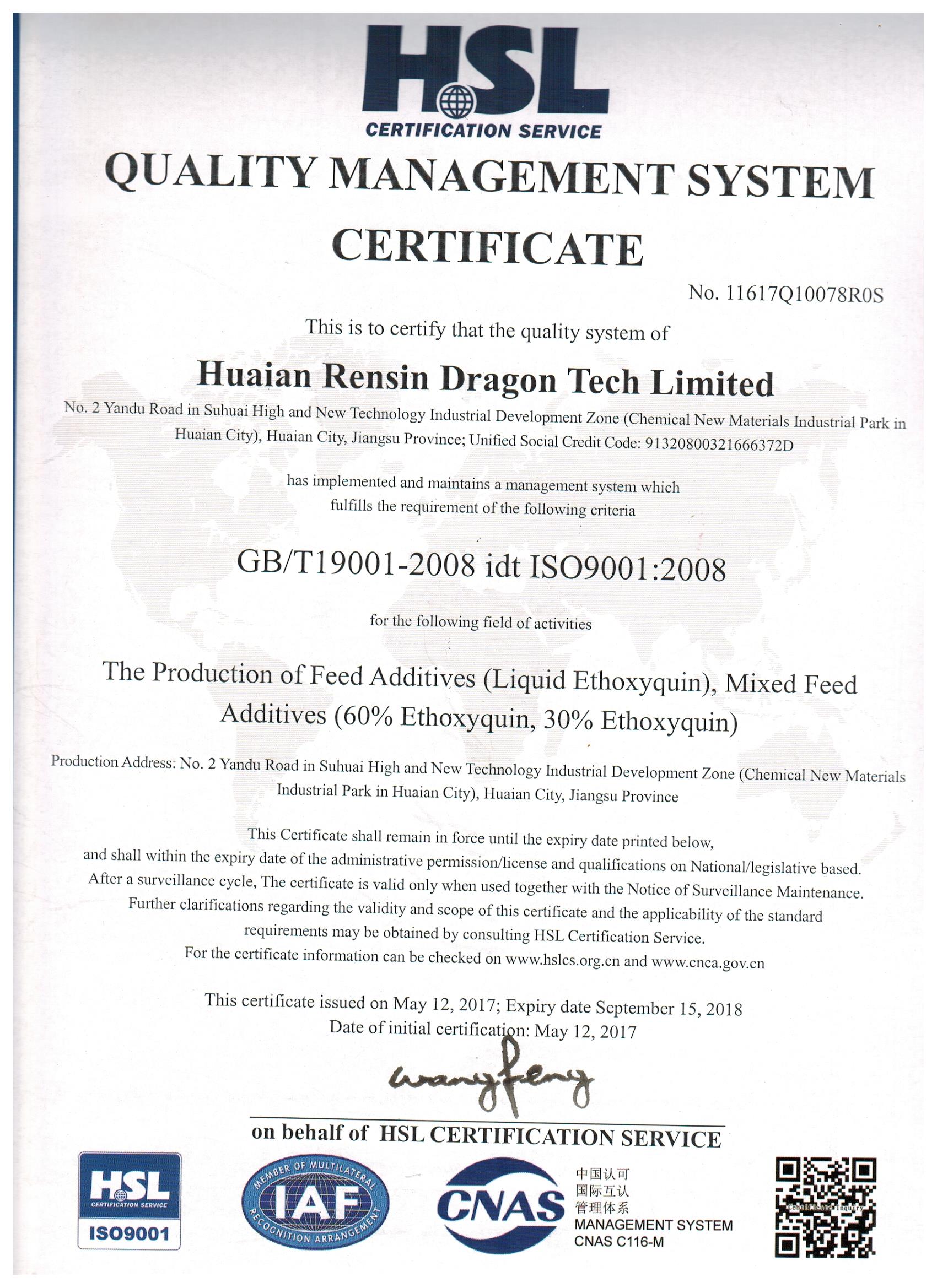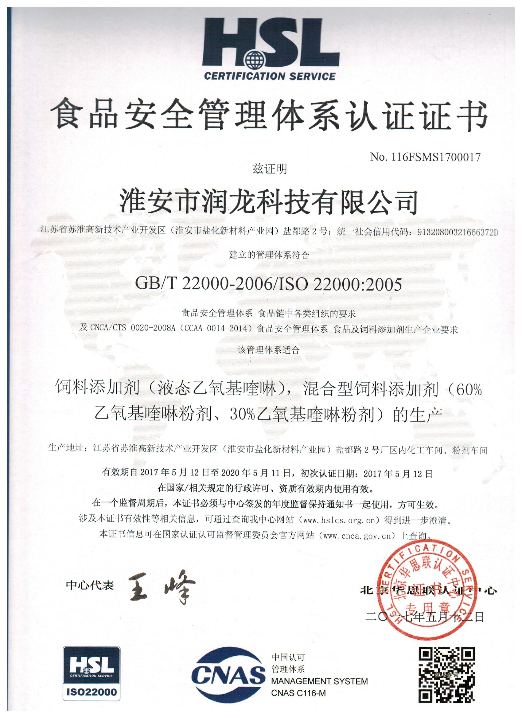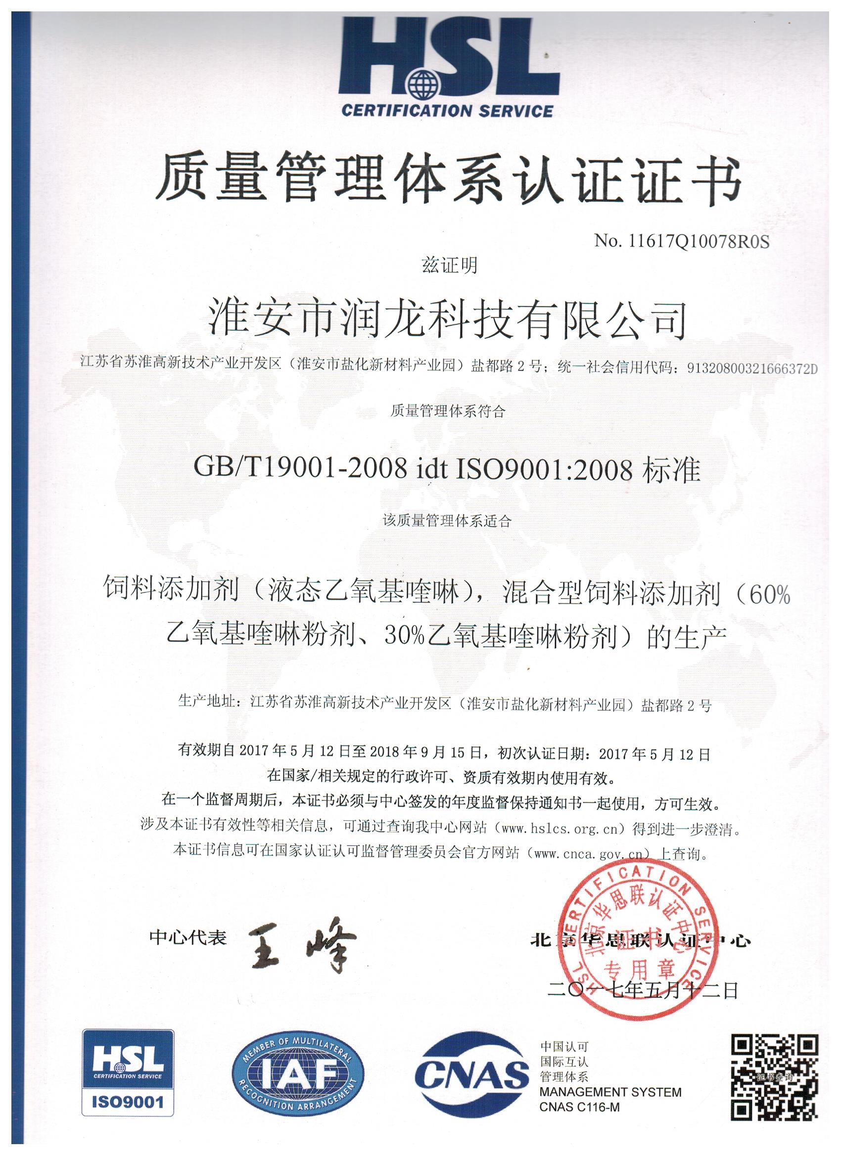 潤(rùn)龍科技乙氧基喹啉自投產(chǎn)以來,生產(chǎn)穩(wěn)妥、安全、質(zhì)量可靠,生產(chǎn)理念堅(jiān)持走全球一體化道路,所投產(chǎn)的產(chǎn)品全部基于國際質(zhì)量水平的技術(shù)基礎(chǔ)之上實(shí)施,主營(yíng)產(chǎn)品“乙氧基喹啉”已家喻戶曉,暢銷亞洲、歐洲、南美洲、北美洲、大洋洲等30多個(gè)國家和地區(qū),年出口占比高達(dá)80%以上。同時(shí),與國內(nèi)多家百強(qiáng)企業(yè)形成強(qiáng)力的合作關(guān)系。